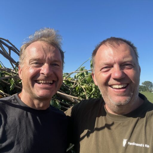 Vi er Henrik og Peter – af mere tekniske årsager har vi hver sit firma, men arbejder idet daglige tæt sammen. Vi skiftes til at tage lead på de opgaver vi får ind. Peter fokuserer på træfældning, beskæring, mens Henrik koncentrerer sig om anlægsopgaver. Vi er et stærkt team, der supplerer hinanden godt og inddrager andre samarbejdspartnere, når opgaverne kræver det.